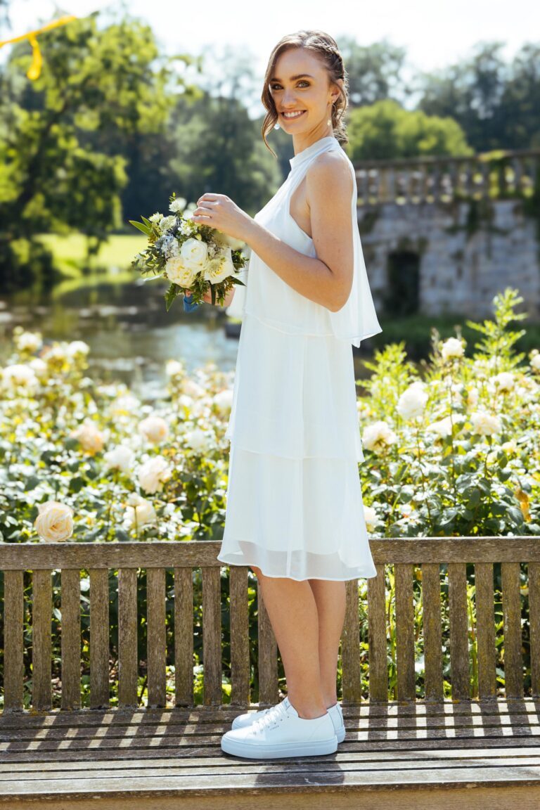 Ja, auch hier ist so gut wie alles möglich und die Übergange sind sowieso fließend! Küssdiebraut Kleider mit weit geschnittenen A-Linien Röcken fallen meist auch fließend aus, da sie keinen Stand mit festem Saum haben. Unser liebstes Neckholder Brautkleid überzeugt auch mit fließend schönem Rock und ein Kleid mit locker fließender Form kann auch eine Schleppe mit zu deiner Hochzeit bringen.