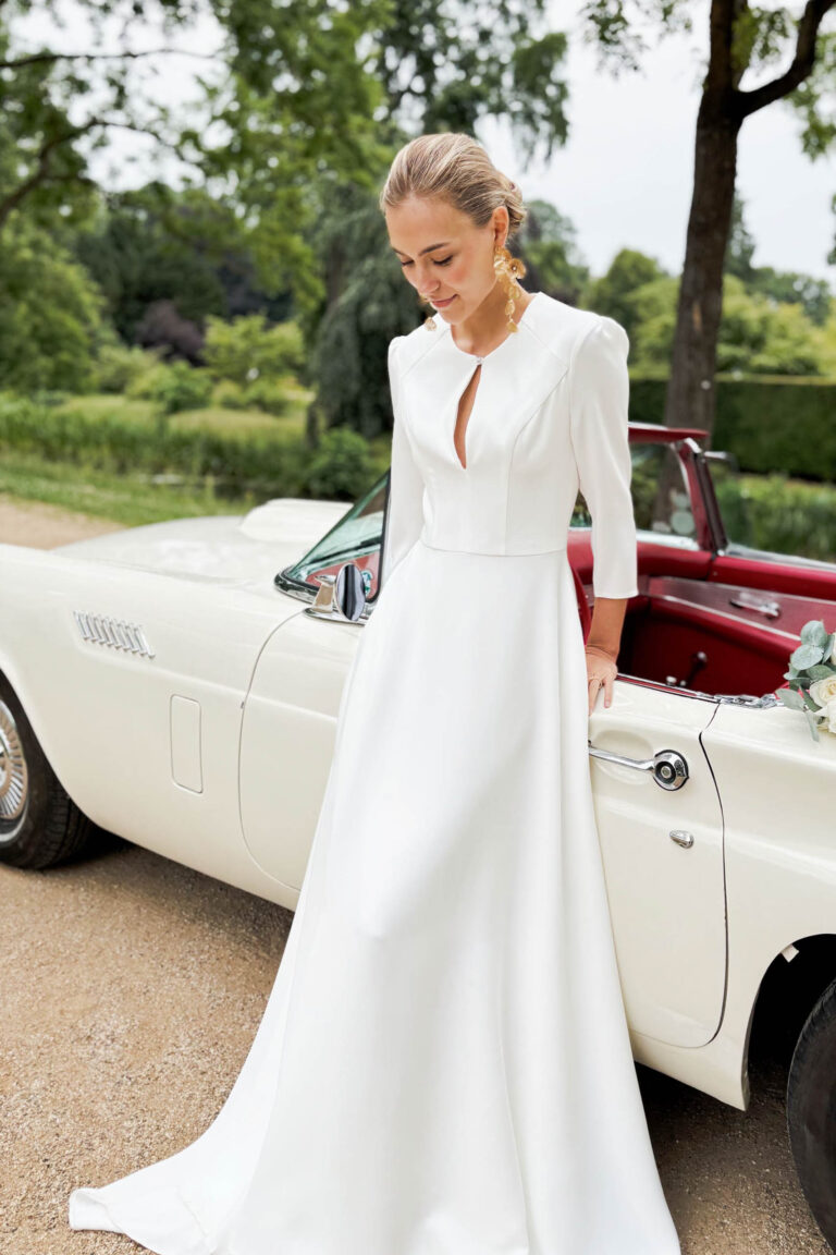 Gleichzeitig kann man von der Ärmellänge noch nicht schließen, wie viel Haut du in deinem Brautoutfit zeigst. Ein Langarmkleid kann am Ausschnitt eher zugeknöpft und hochgeschlossen sein. Es geht aber ganz anders. Mit einem modischen Carmenausschnitt zeigst du deine Schultern und natürlich kann ein Traumkleid mit Ärmeln rückenfrei sein.