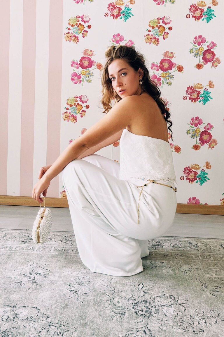 Wenn dein Kleid richtig angepasst ist, rutscht da auch an deiner Hochzeit nichts! Wir arbeiten in die Corsage meistens noch ein separates oder zusätzliches elastisches BH-Band ein, damit du dich als trägerlose Braut auf der ganzen Linie wohl in deiner Haut fühlst. Meist ist das „Rutschgefühl“ eher reine Kopfsache, da man es nicht unbedingt gewohnt ist, schulterfrei zu tragen.