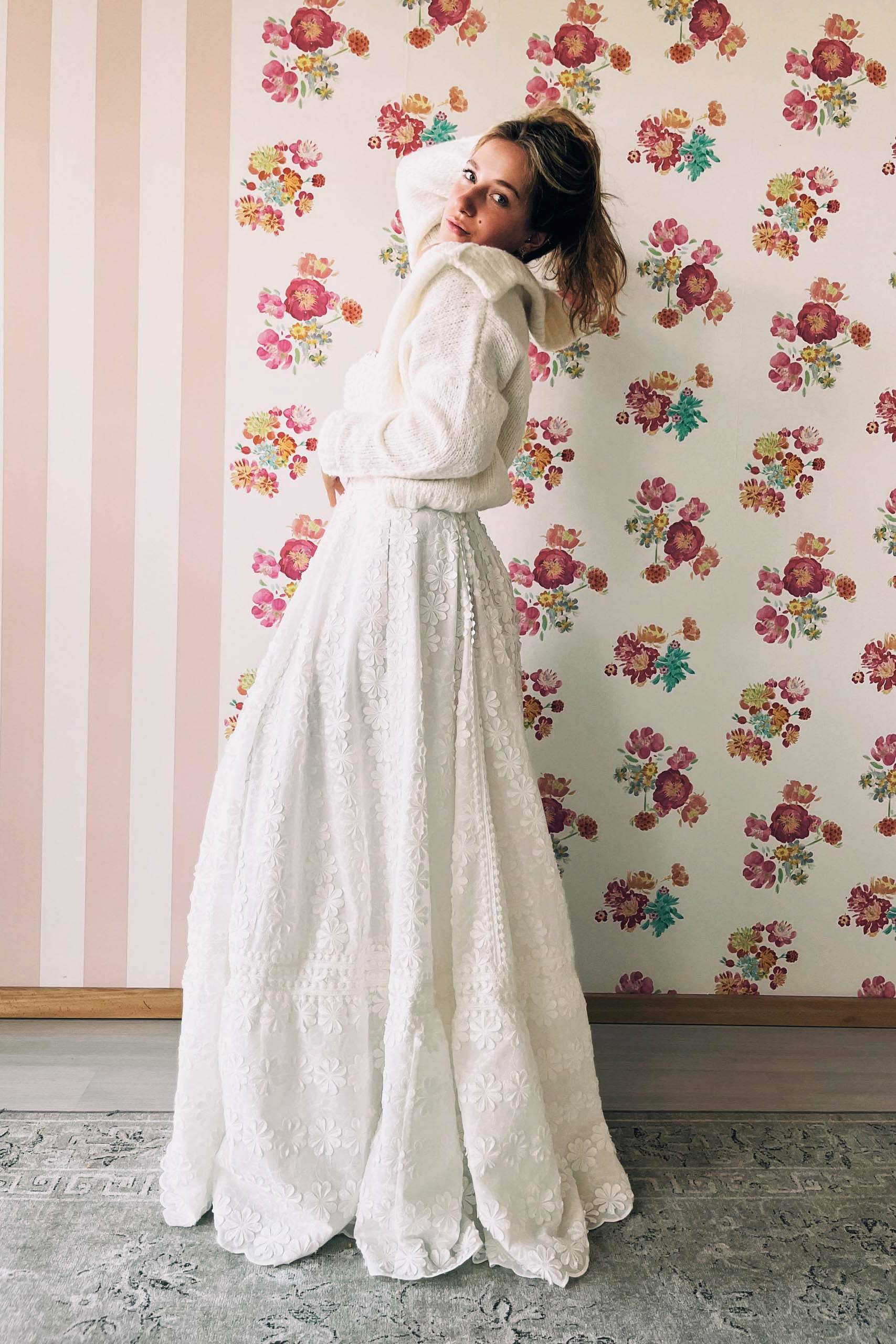 Sicherheitshalber sei es erwähnt, du darfst unser edel Hippie Brautkleid mit Blüten natürlich auch als Nichthippie tragen und gerne in der Kirche damit Ja sagen. ;-) Egal wo, für kühlere Stunden empfehlen wir dazu die kuschelige Alpaka Mix Strickjacke J-1185, die du nachfolgend in der Slideshow entdecken kannst. Feier die Liebe und genieße die bride time of your life in vollen Zügen. Be bride, be you, be happy!