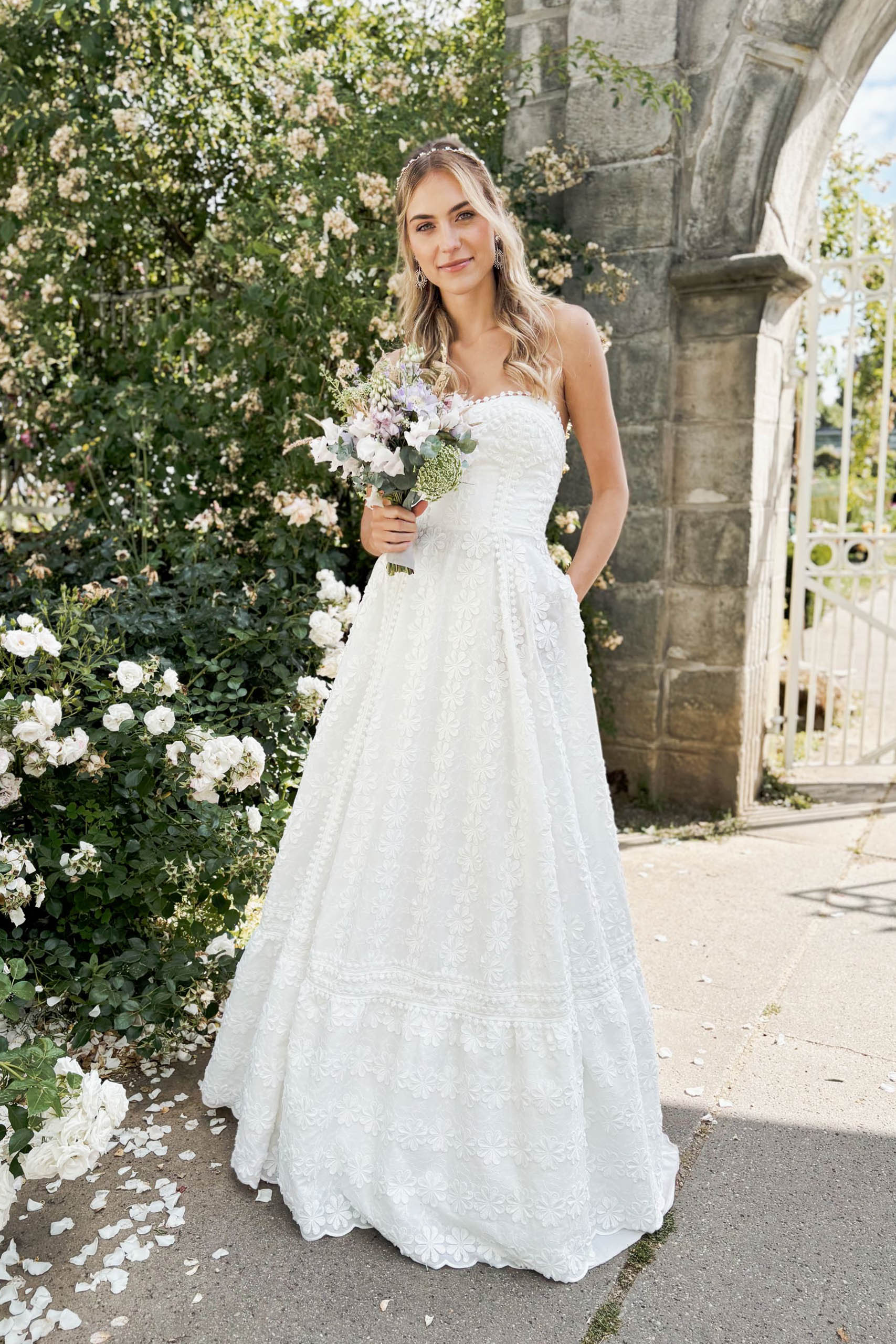 Barfuß zum Altar – aber bitte mit Stil und in diesem Blüten Hochzeitskleid mit Taschen und voluminösem Rock